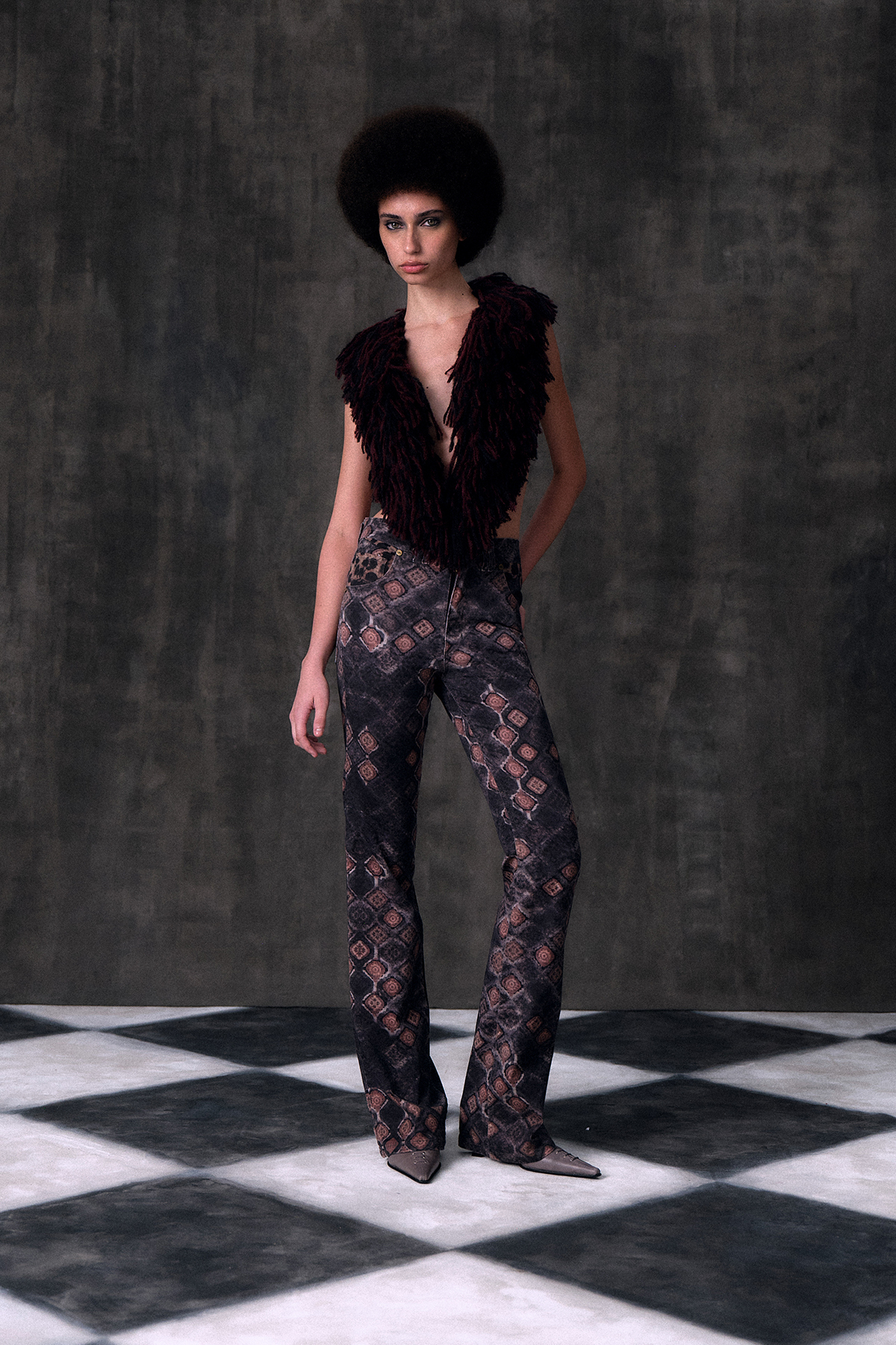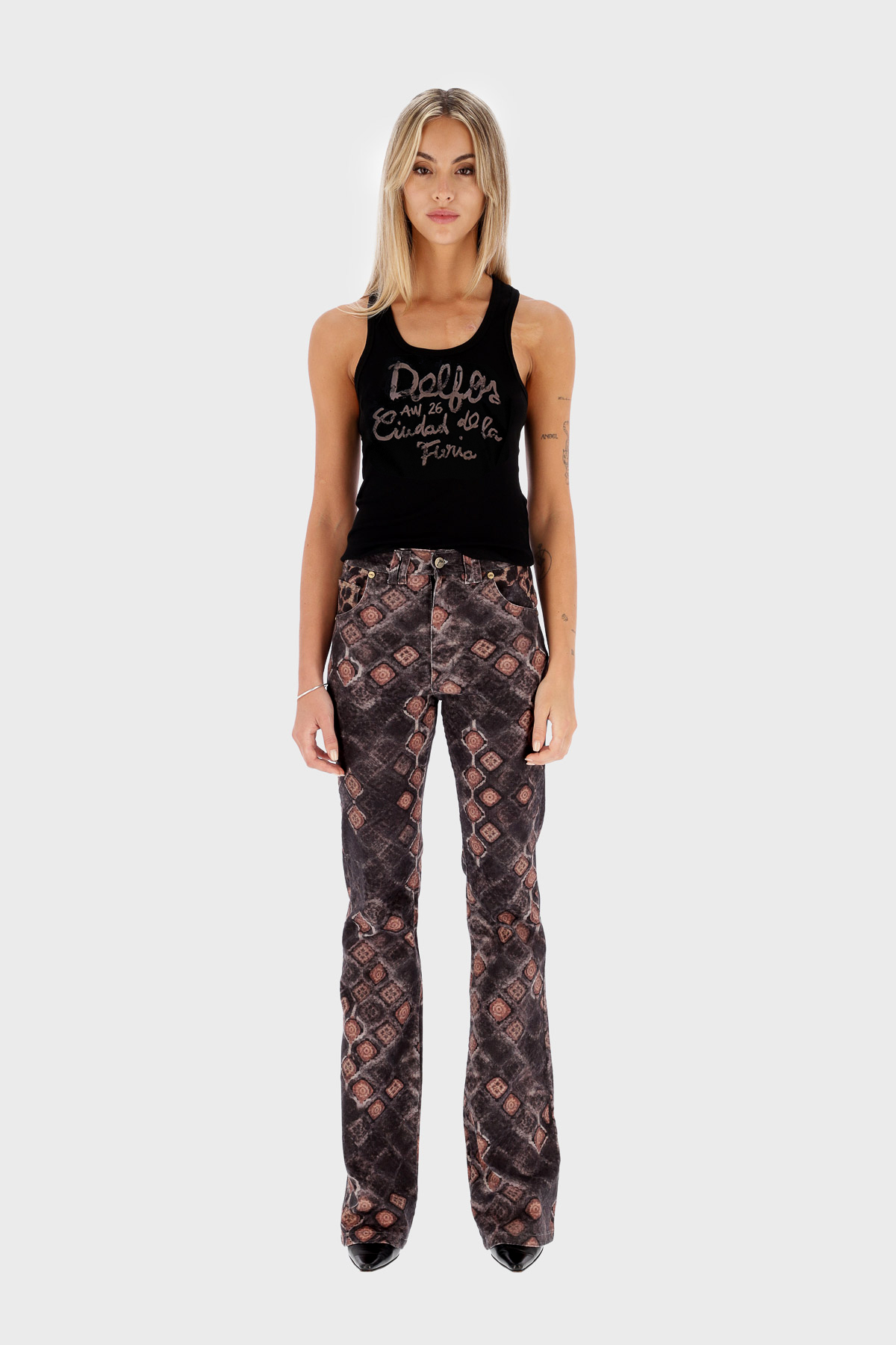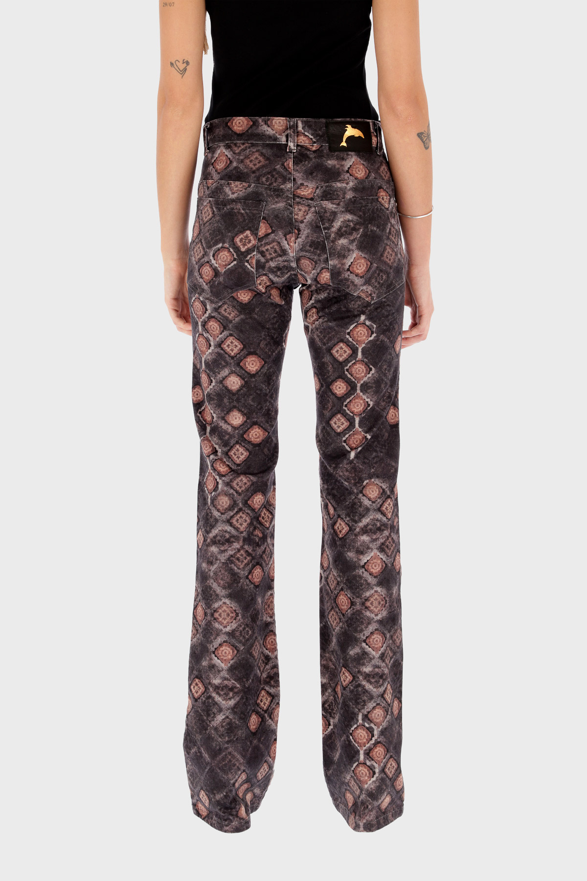 Estampa con la chakana , símbolo milenario de los pueblos originarios de los Andes. Con forma de cruz cuadrada, simboliza la conexión entre el mundo terrenal, el espiritual y el interior.