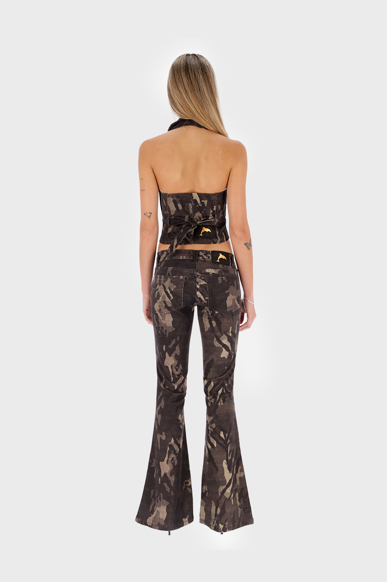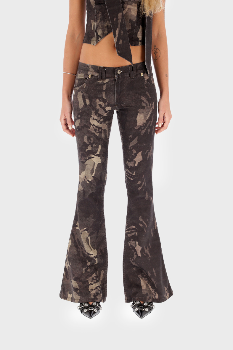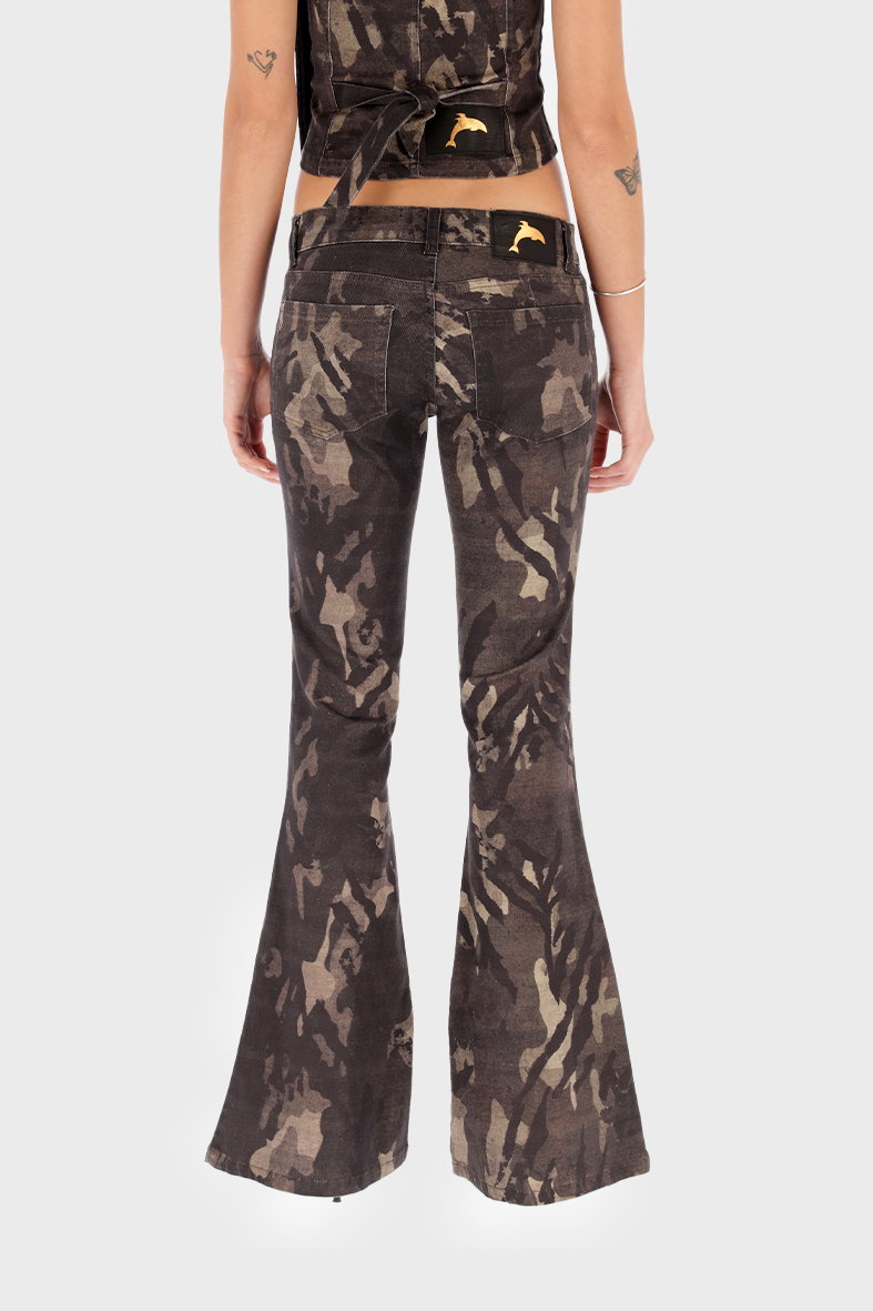 Jeans de corte oxford , tiro bajo. Print camuflado con zebra y stars.