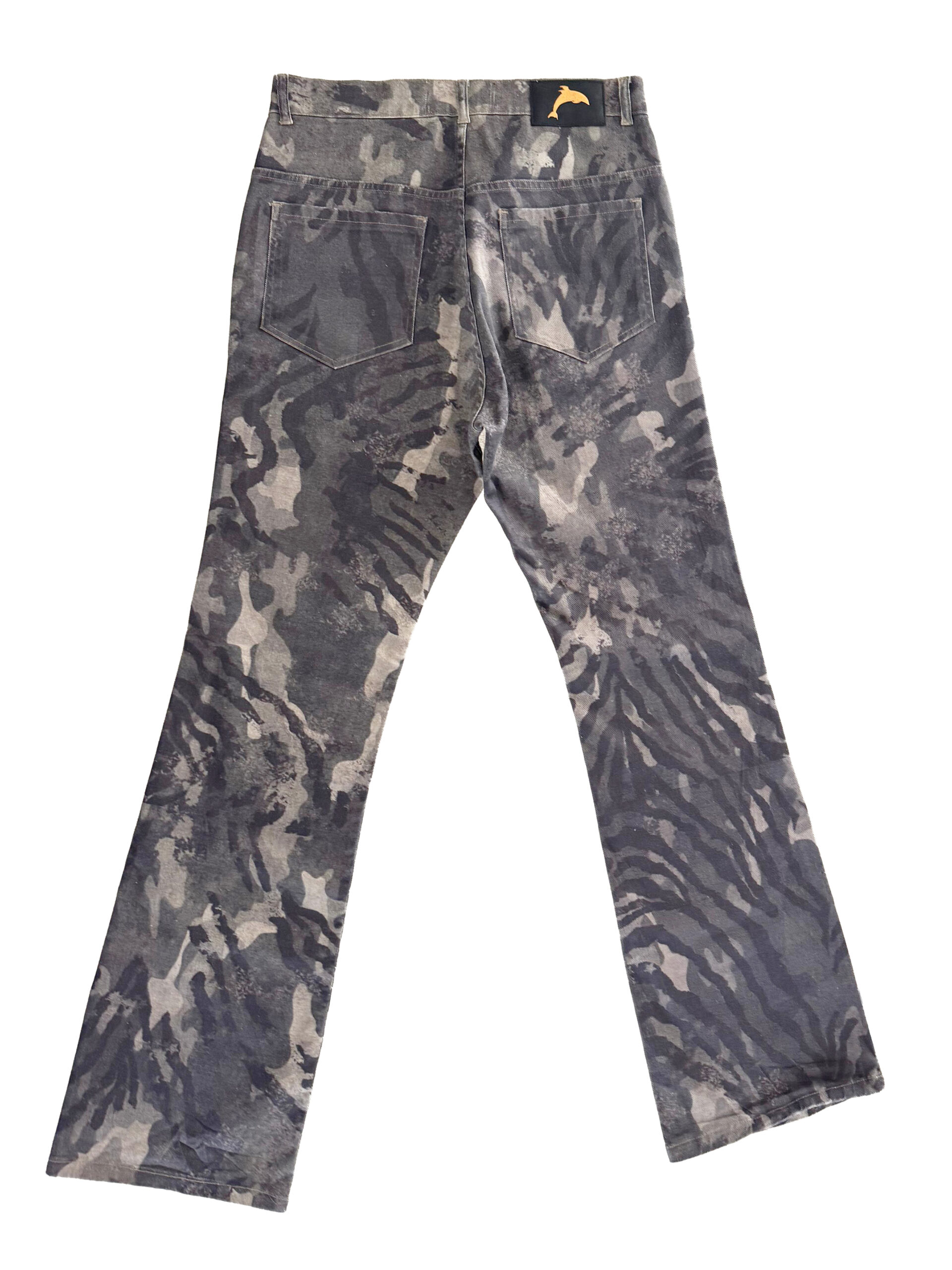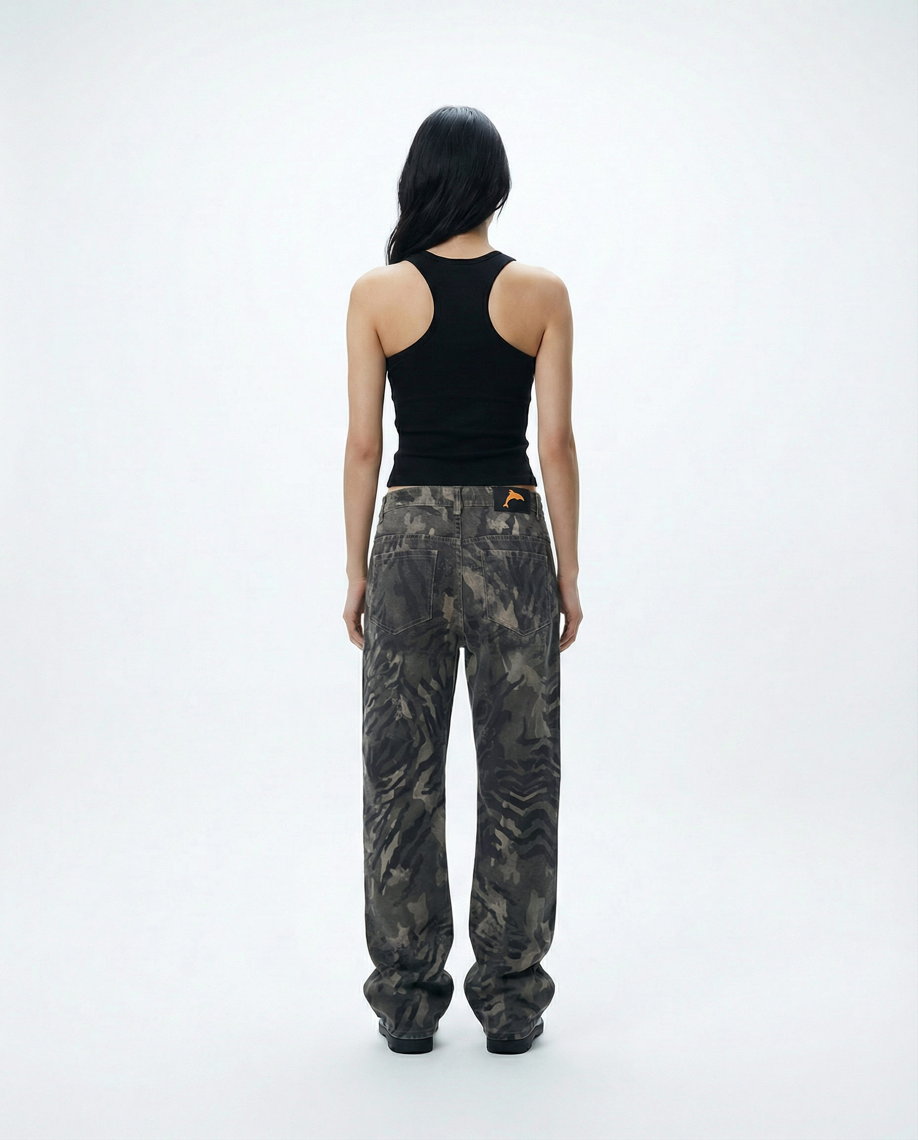 Jeans de corte baggy , tiro medio, unisex. Print camuflado con zebra y stars.