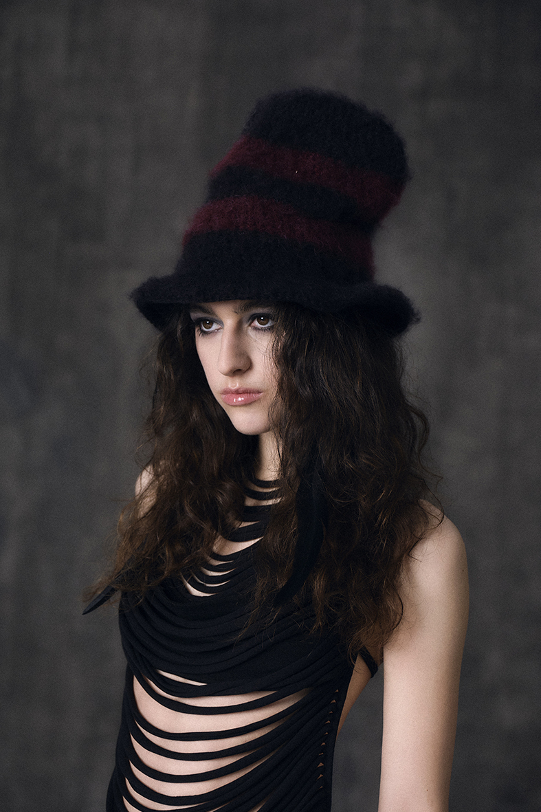 Sombrero de lana peinada, crochet tejido a mano.